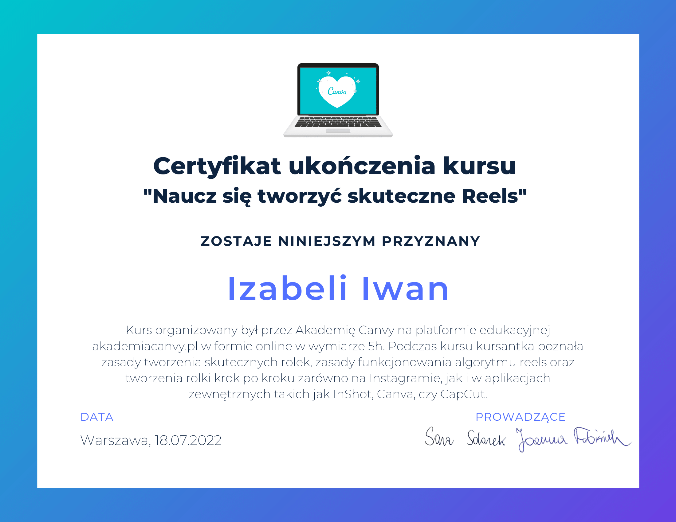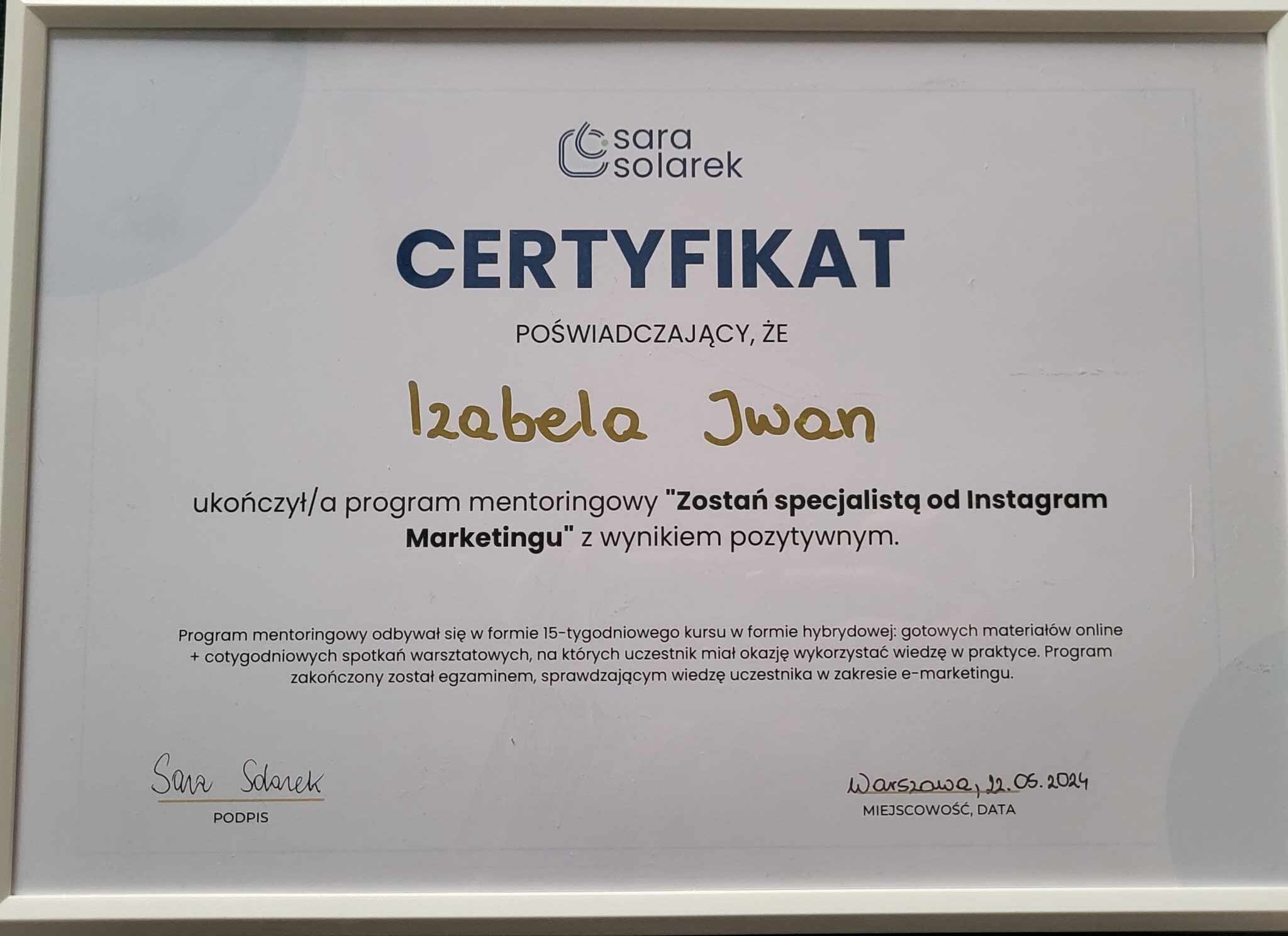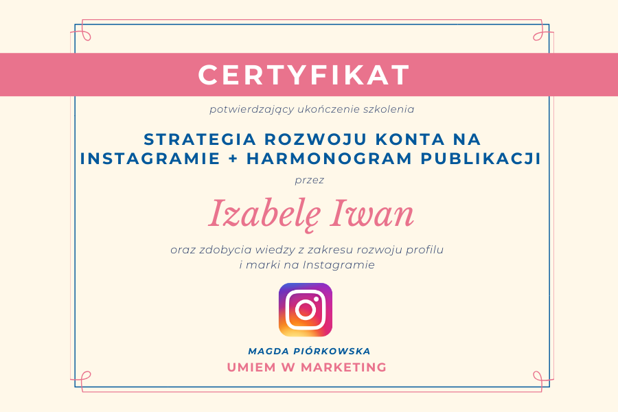 Z wykształcenia jestem Architektem Informacji, a dodatkowo ukończyłam studia podyplomowe z Architektury Wnętrz. Mam również za sobą Akademię Social Media Managera, Instagram Specialist Masterclass oraz Szkołę Social Media Managera.