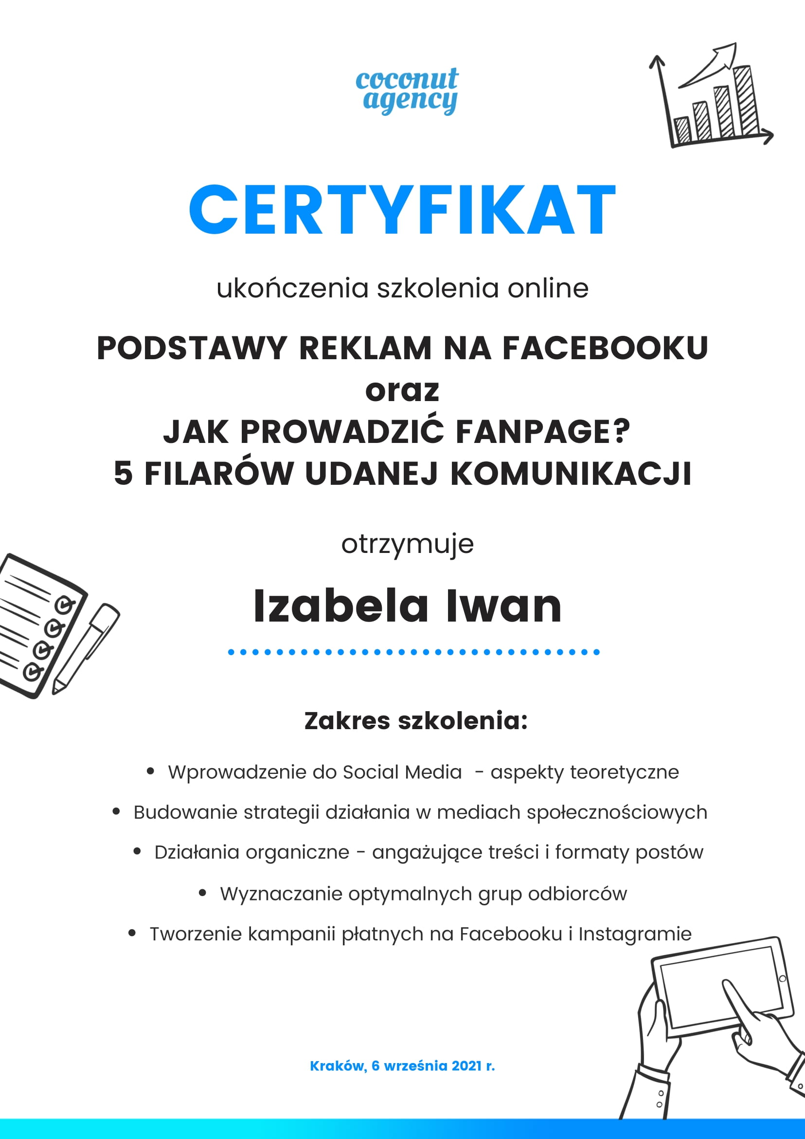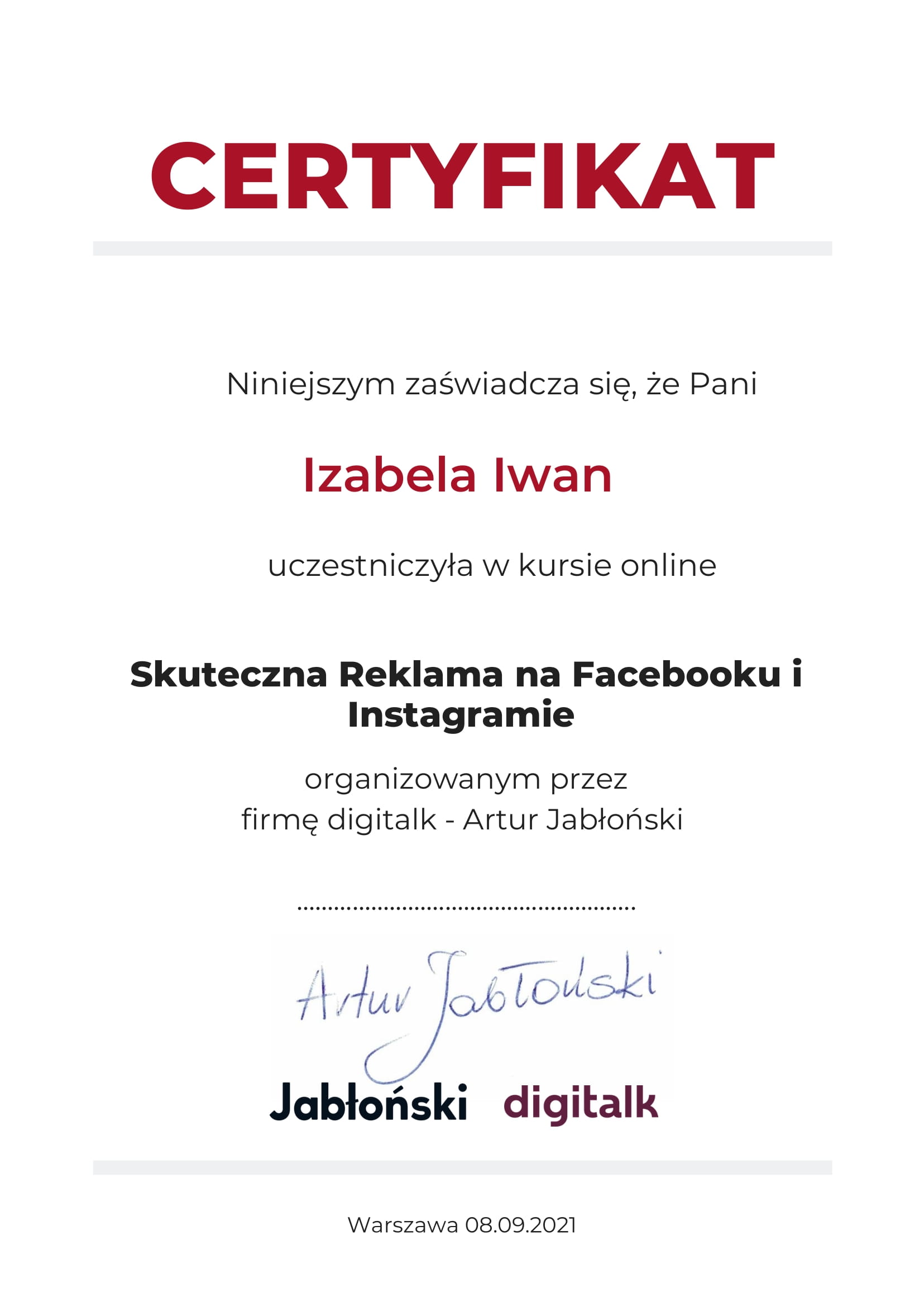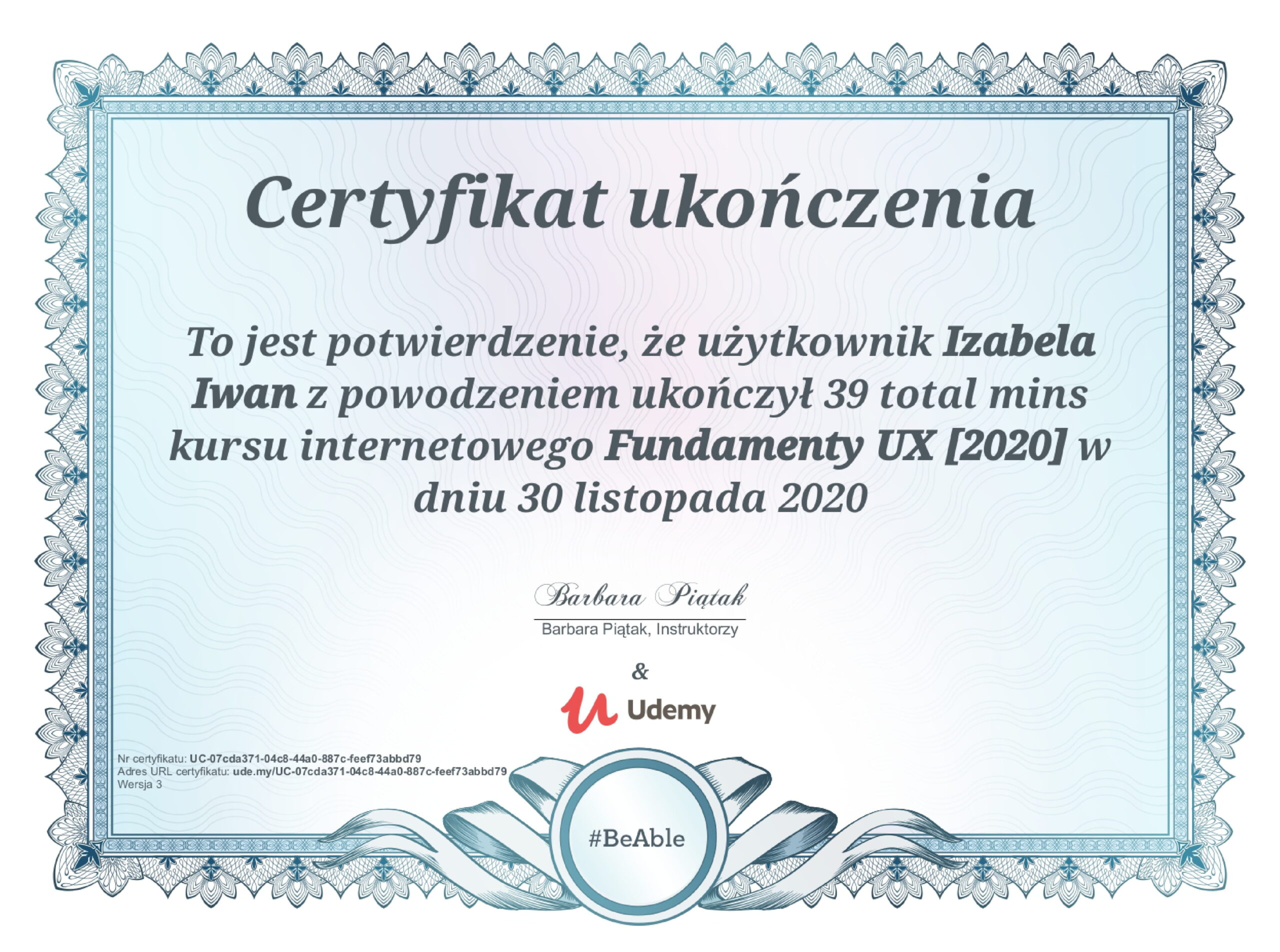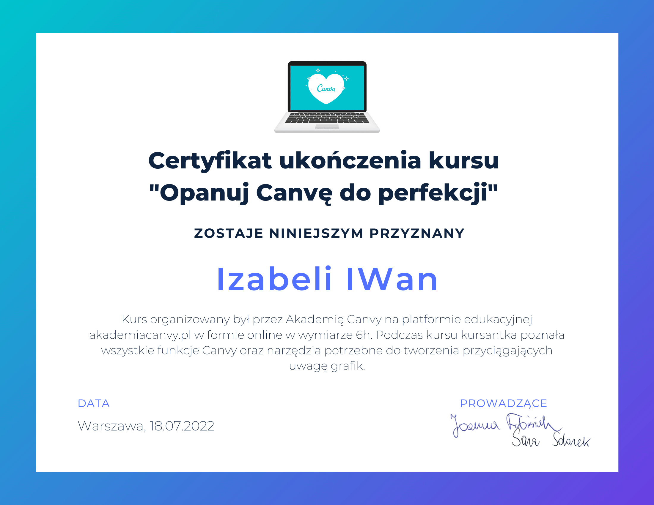 Ukończyłam wiele kursów i szkoleń, które pomogły mi usystematyzować wiedzę i jeszcze bardziej wyspecjalizować się w swojej dziedzinie.